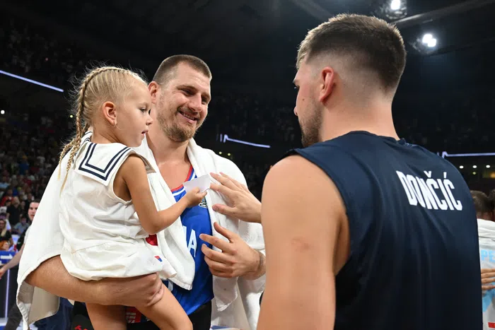 Nakon poslednje sirene, među prvima je na teren, tati u zagrljaj, potrčala mala Ognjena. Sa njom u naručju, Nikola se pozdravio sa rivalima. Kada su došli do Luke Dončića, devojčica se pozdravila sa njim, a onda se vratila kod mame, među publiku.